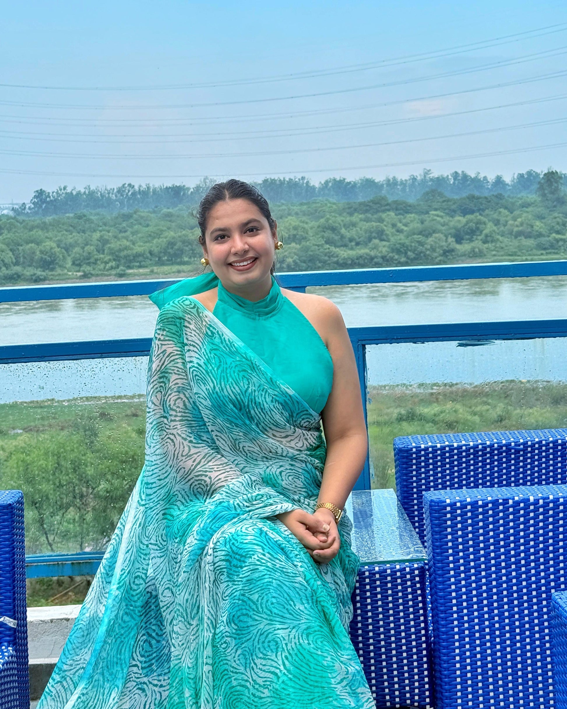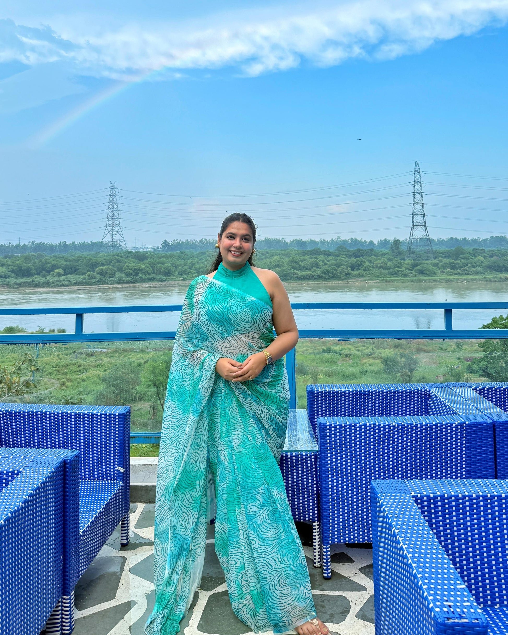 Digitally printed on high-quality chiffon, this saree captures modern aesthetics while remaining easy to care for and versatile. Each piece is thoughtfully designed to blend everyday practicality with elevated, fashion-forward vibes.