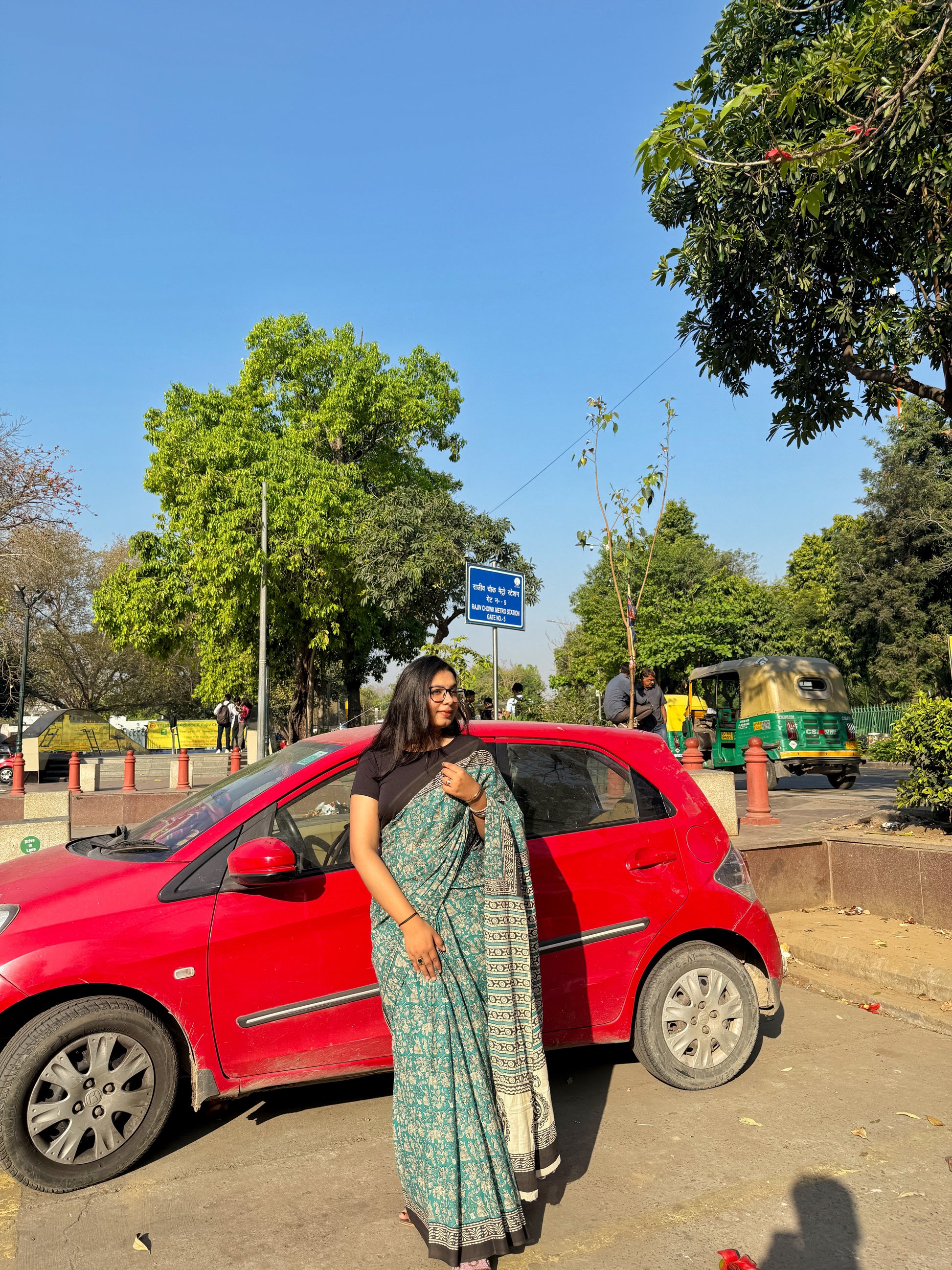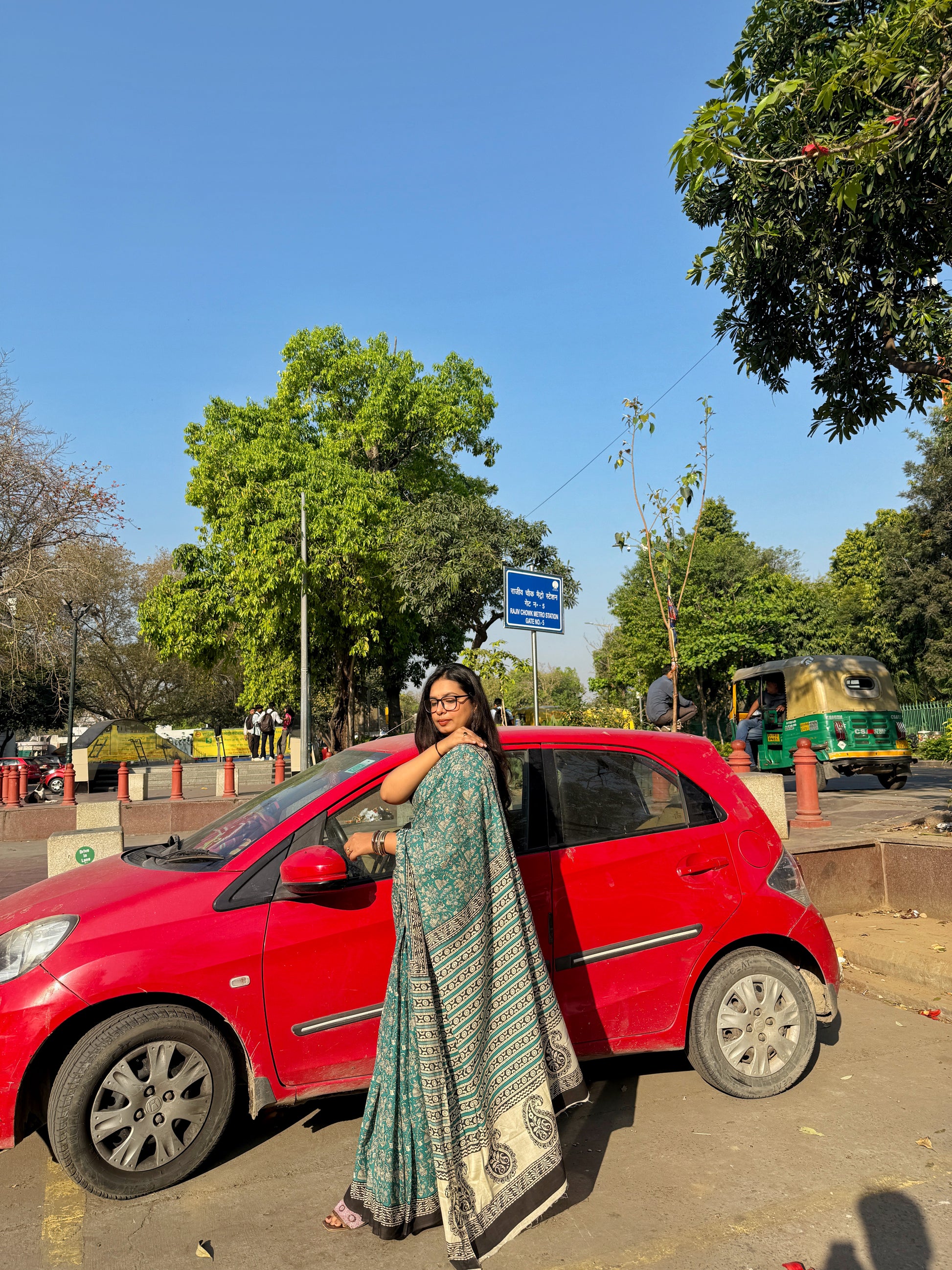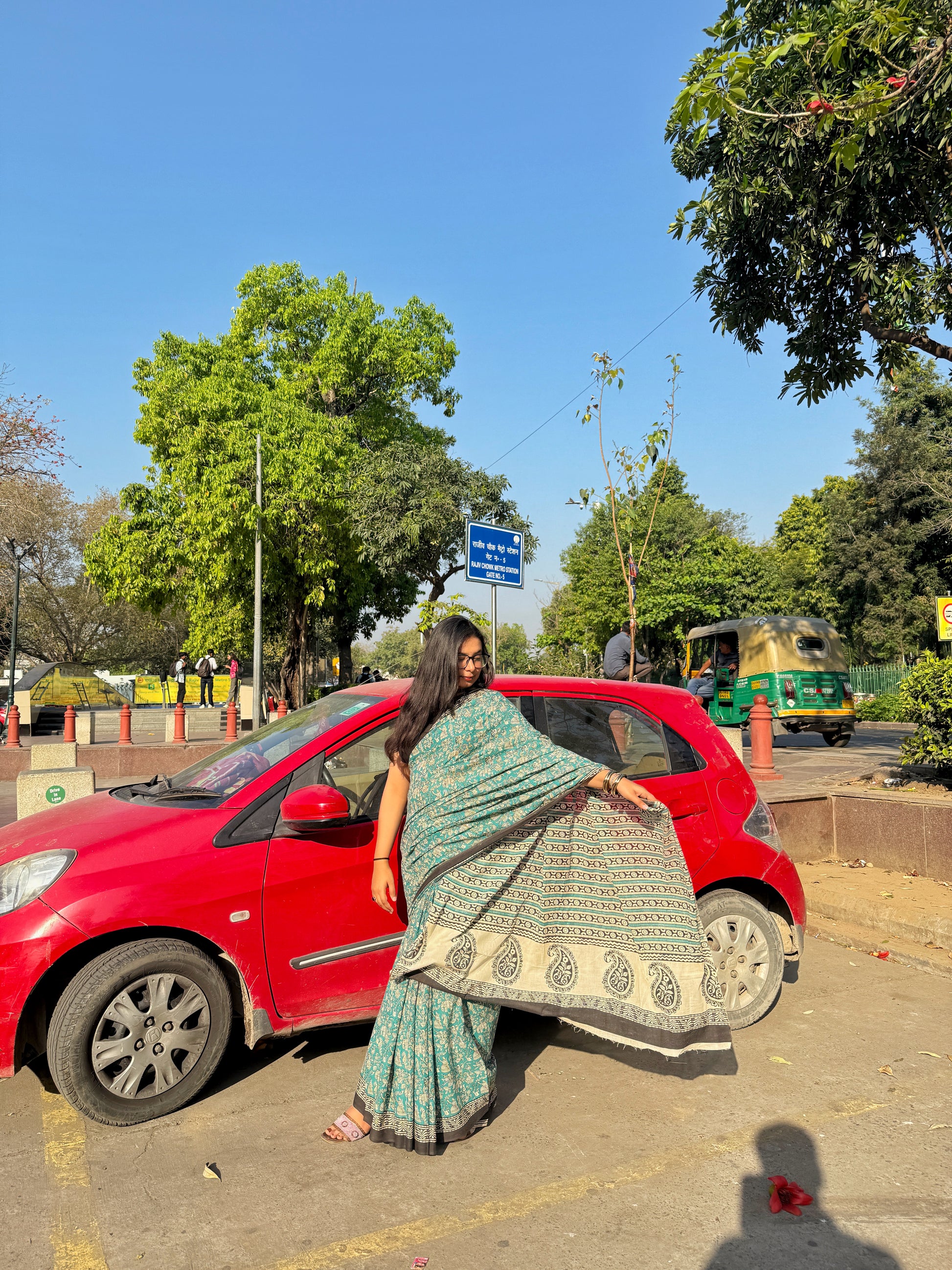 CRAFT: Printed cotton saree made using eco-friendly, Azo-free dyes. Handcrafted by skilled artisans using traditional block print techniques.