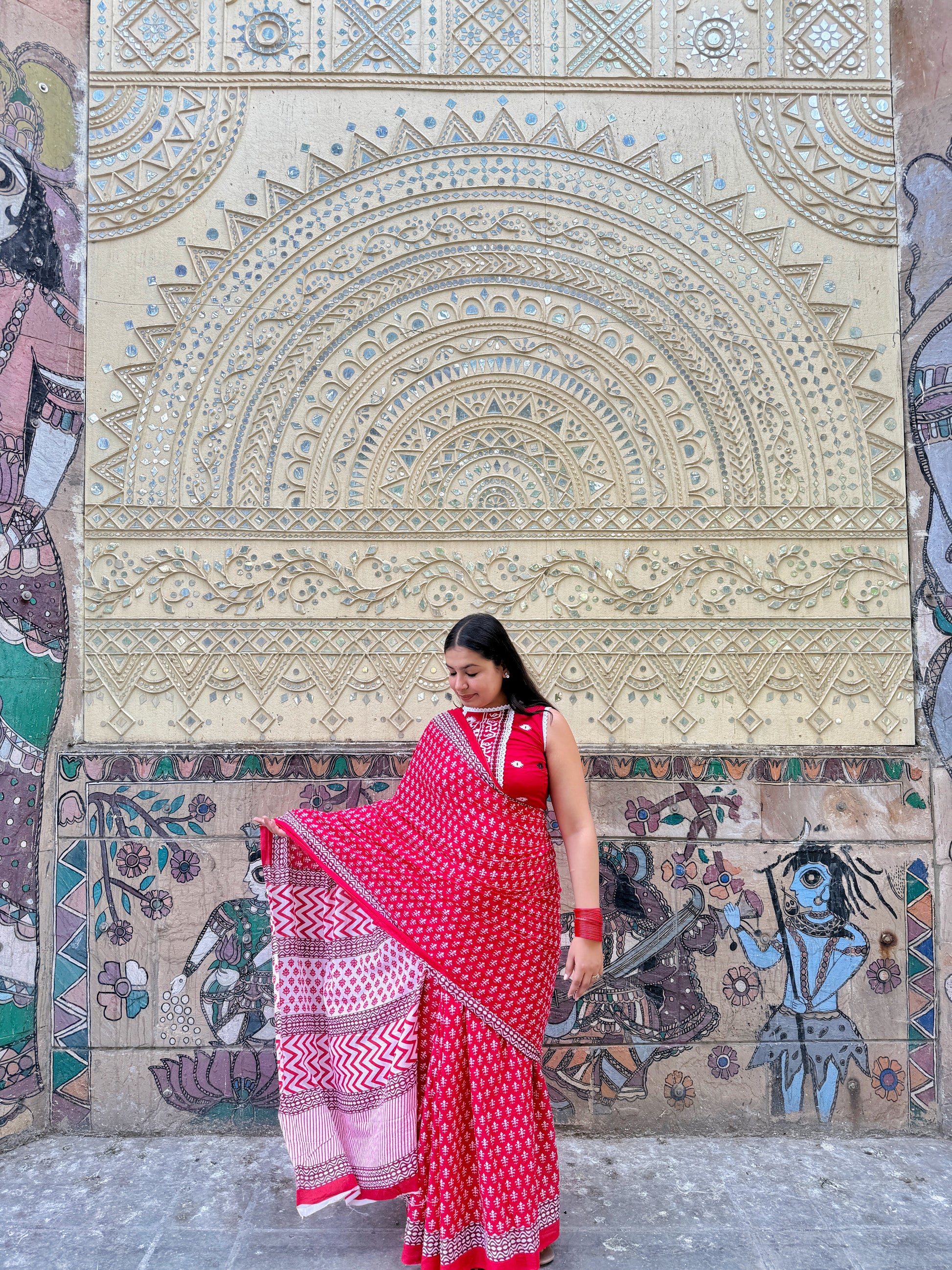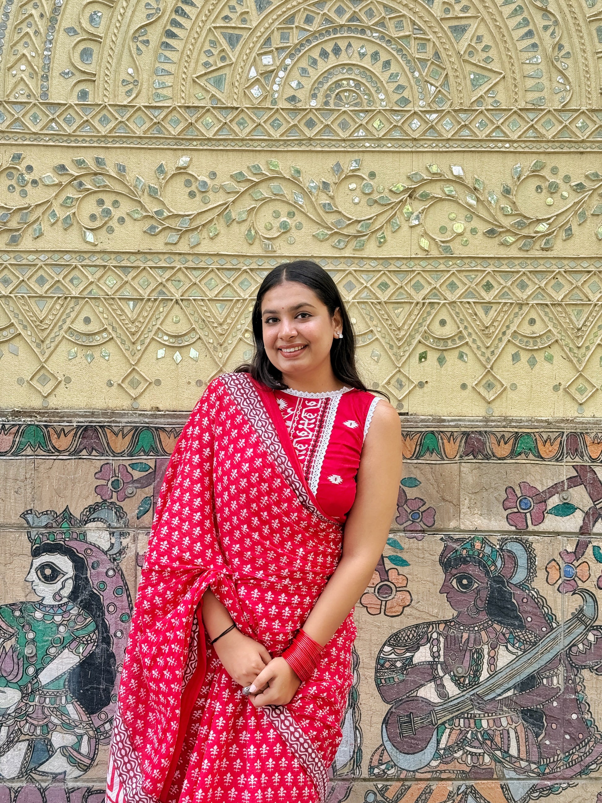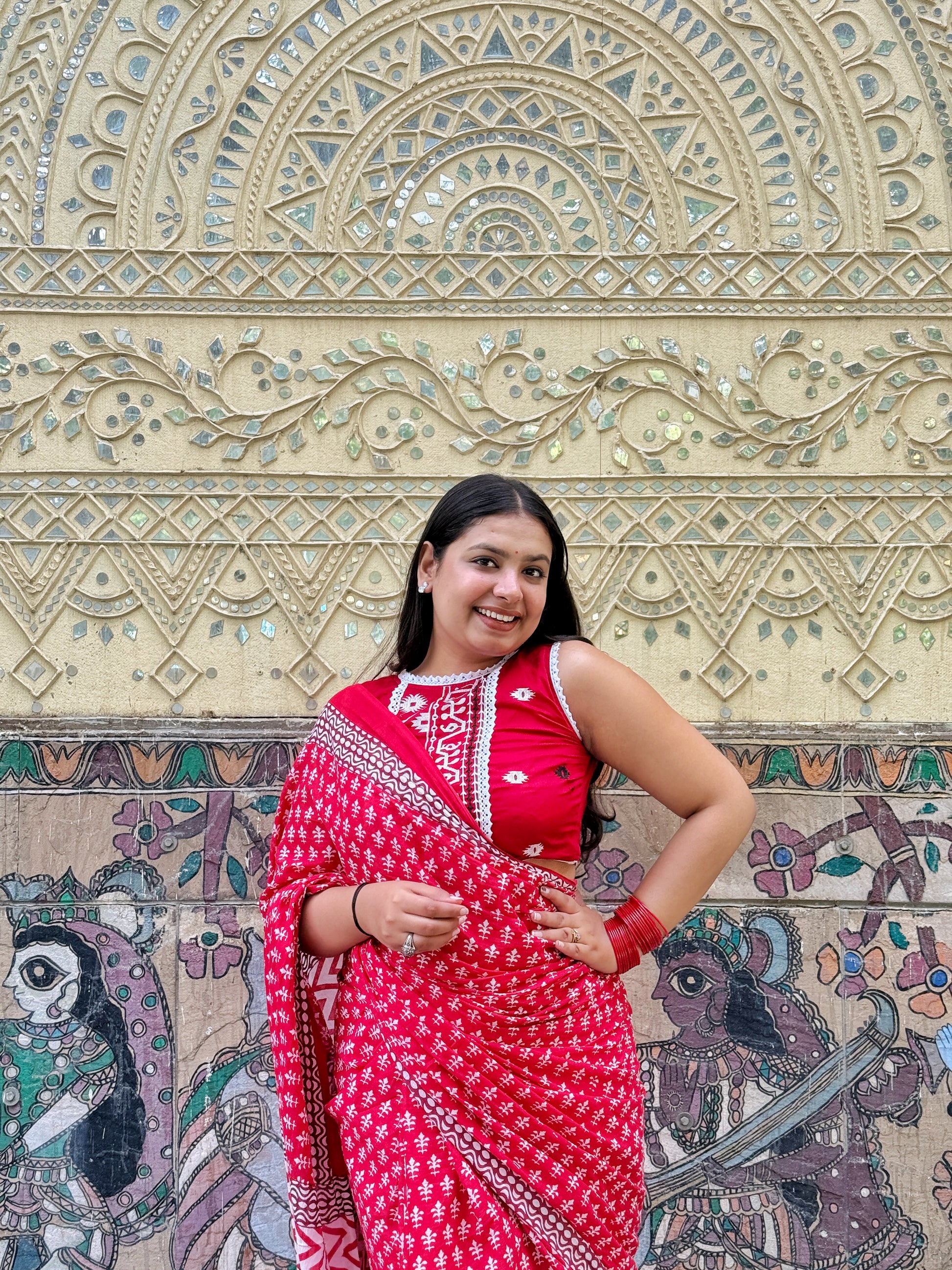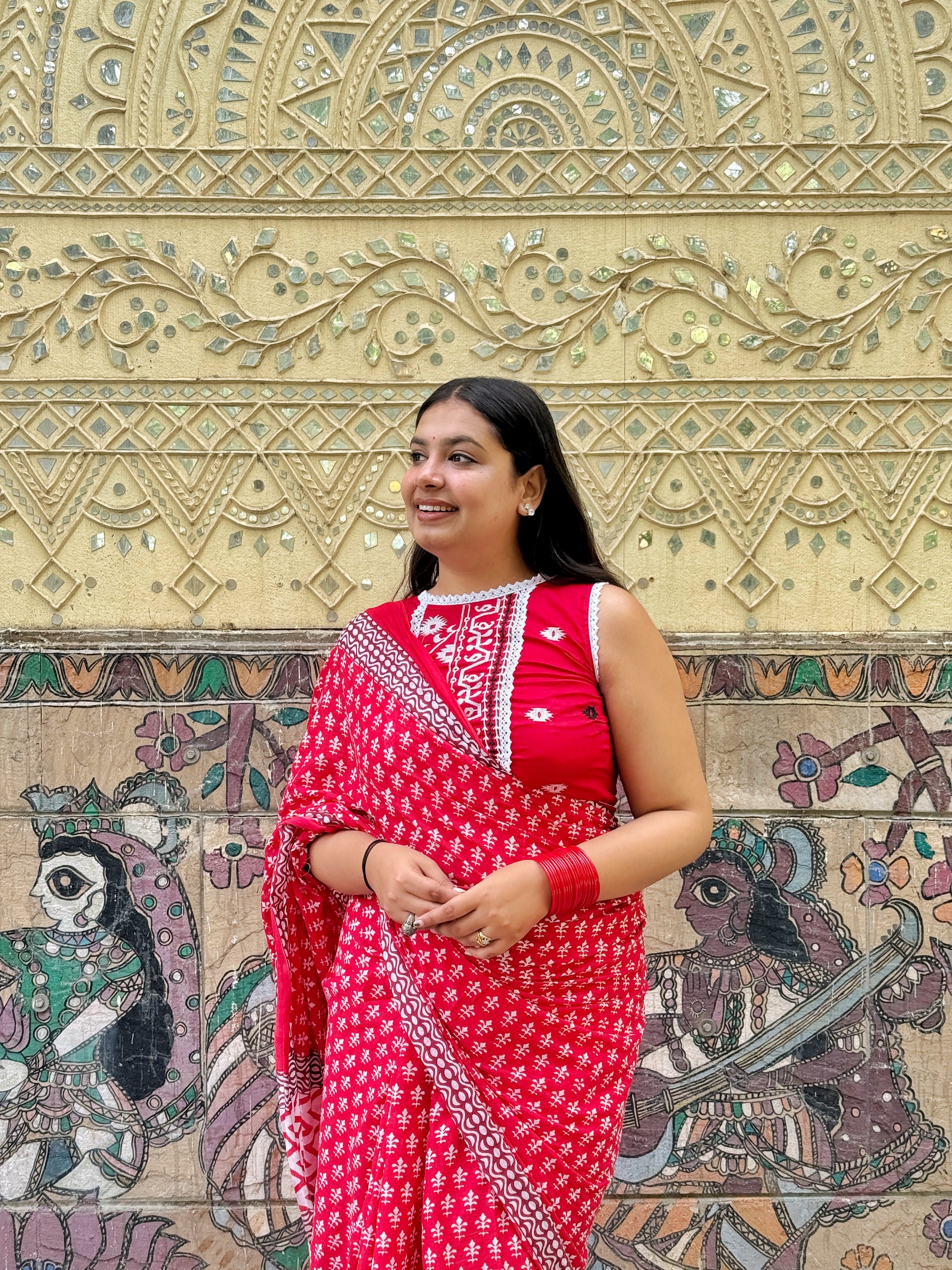 Sajni – Red Hand Block Printed Mulmul Cotton Saree