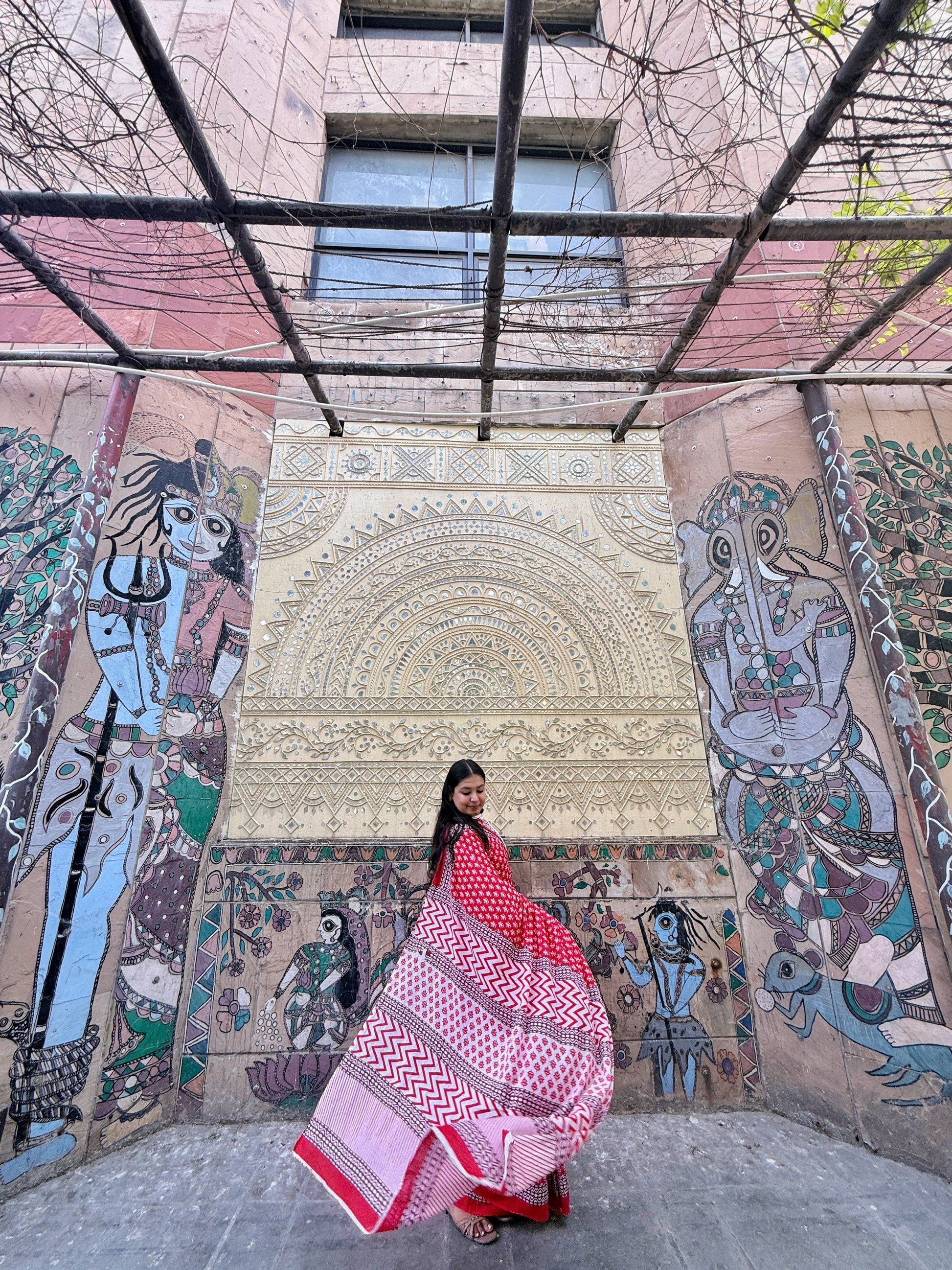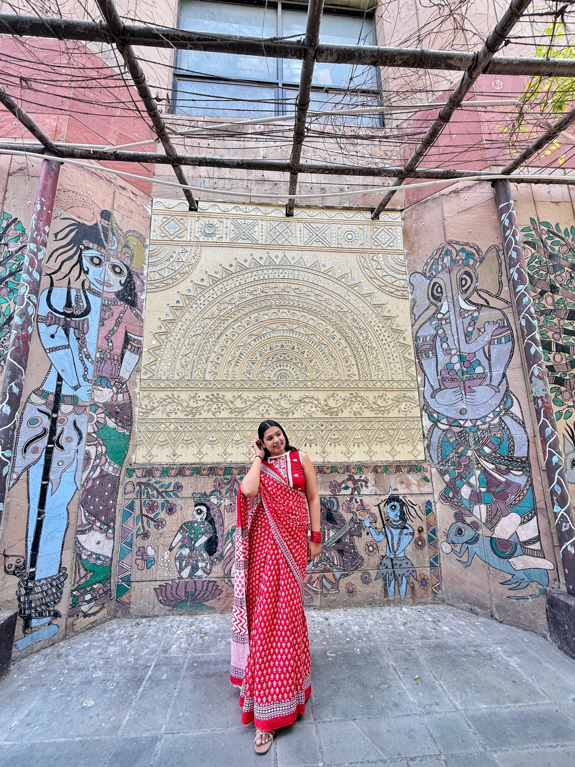 Sajni is a tale of deep love, unspoken words, and timeless elegance. Draped in shades of passionate red, this saree speaks to the hearts that beat a little louder, love a little deeper. It's for the ones who believe in soul connections, not grand gestures — a saree that feels like poetry wrapped in cotton.