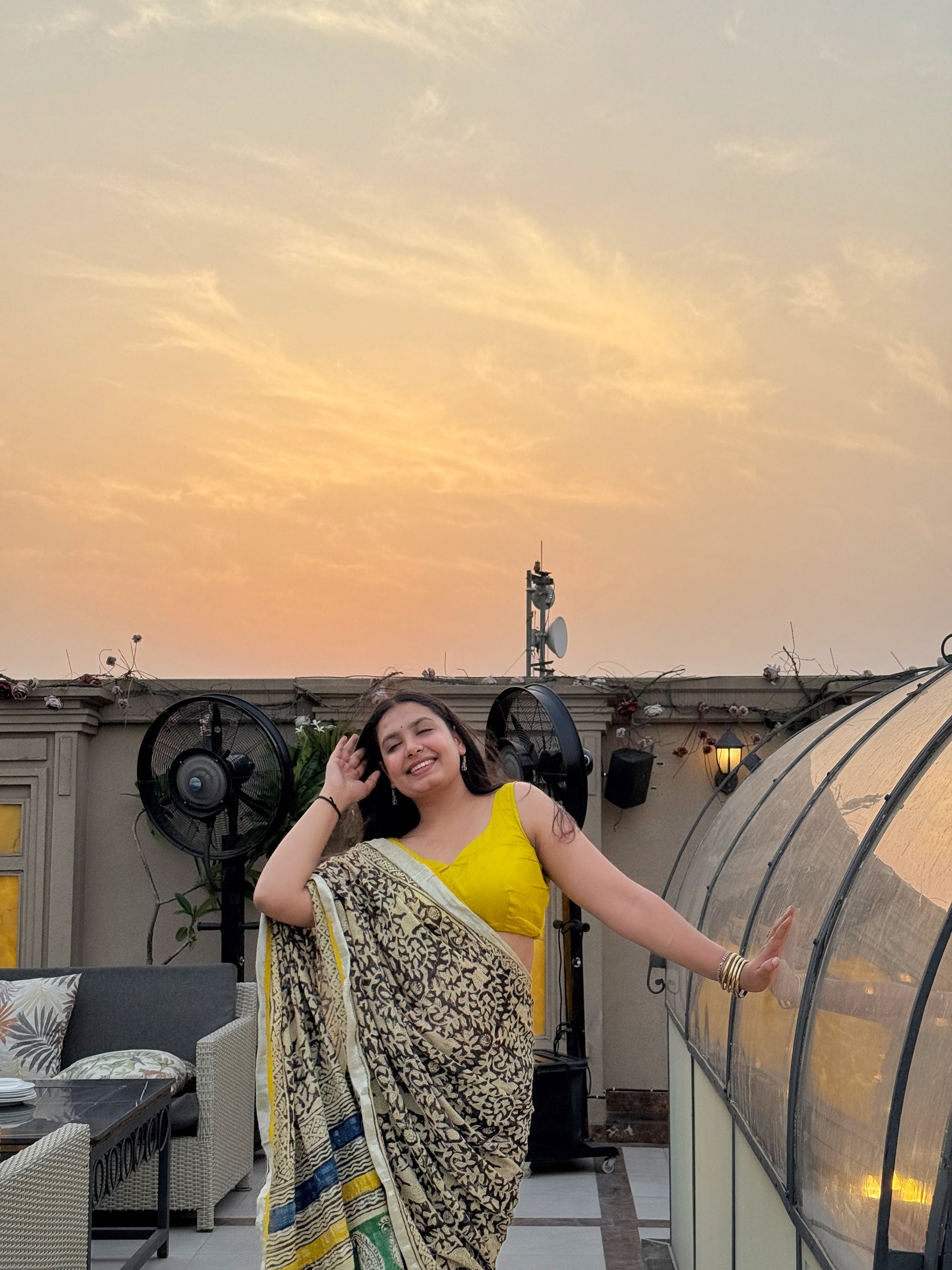 Zoya walks in, and the room forgets to breathe. She’s elegance with an edge — the kind who knows her worth and doesn't need to prove it. This black linen saree mirrors her aura: bold, mysterious, and oh-so-refined. She's the story everyone wants to read but only a few truly understand. A vision in black, with a heart full of fire and footsteps full of purpose.